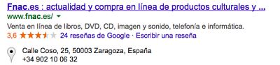 Se trata de las famosas estrellas que aparecen en las SERPs. Son valoraciones dadas por los usuarios. Cuantas más y mejores reseñas obtengamos, más credibilidad ganaremos de cara al usuario que navega.